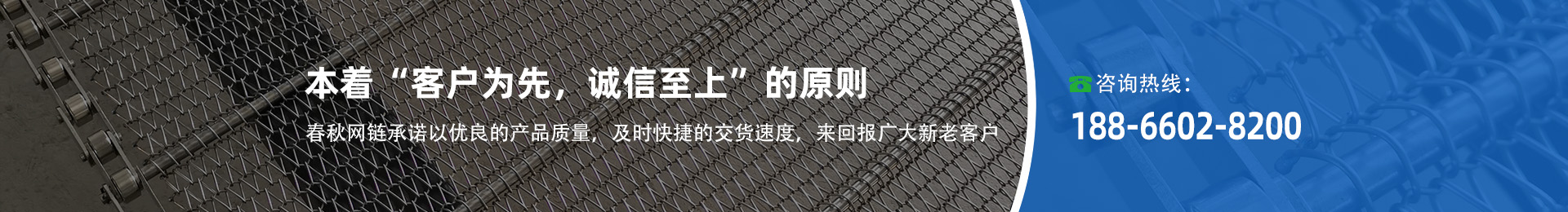 寧津春秋網(wǎng)鏈設(shè)備有限公司專注生產(chǎn):金屬網(wǎng)帶,烘干機網(wǎng)帶,支軸鏈,清洗機網(wǎng)鏈,不銹鋼網(wǎng)鏈,乙字型網(wǎng)帶,不銹鋼鏈板,沖孔鏈板,提升式鏈板,排屑機鏈板,平板鏈,眼睛網(wǎng)帶,鏈片式網(wǎng)帶,鏈板輸送機,網(wǎng)帶輸送機,馬蹄鏈(長城網(wǎng)帶),輸送鏈條,傳動鏈條,大滾珠雙節(jié)距鏈條,非標鏈條,鏈輪等輸送設(shè)備及配件。亦可根據(jù)客戶需求,設(shè)計,定制,各種流水線等,是集新產(chǎn)品的研發(fā)、制造、銷售于一體的生產(chǎn)型企業(yè)……